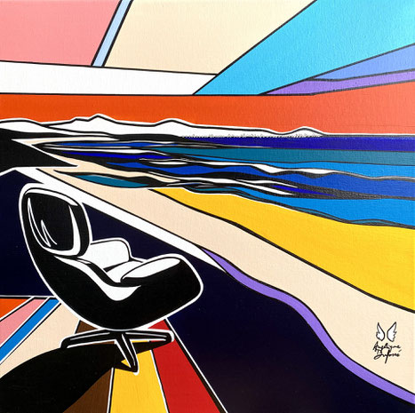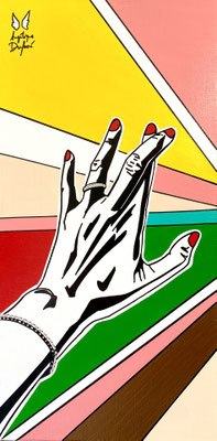 Angélique explore le dialogue entre figuration et abstraction ; ses oeuvres dont le sujet principal et souvent traité en noir et blanc contrastent avec les fonds toujours traites en couleurs vives et de manière géométrique. une folie bien organisée !!